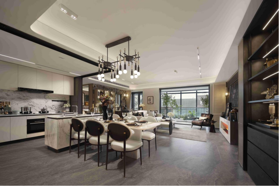 通过人性化的生活领域划界,满足高阶家庭对美好人居的需求。奢阔尺度的生活空间预留,为家庭聚享、生日庆功、亲友欢聚时刻,提供体面的社交场域,也为陪伴家人的场景预留了更多可能性。