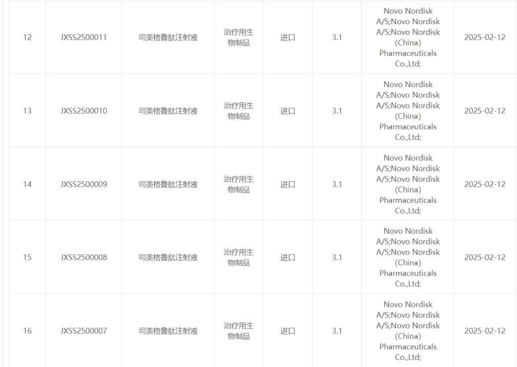 2月12日,中国国家药监局药品审评中心(CDE)官网公示显示,诺和诺德(Novo Nordisk)申报的司美格鲁肽注射液新适应证上市申请获得受理,此次有5个受理号,注册分类为进口3.1。官方消息并未披露具体的适应证,但根据公开资料来看,此次受理的适应证可能是用于降低已确诊心血管疾病的肥胖或超重成人的主要不良心血管事件(MACE)风险。