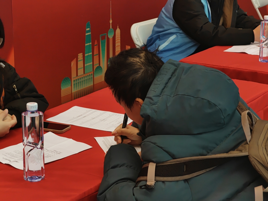胡先生拖着行李箱,绕着现场展板走了两圈,仔细阅读每一条招聘信息,最后在上海航桥人力资源有限公司的展位前停下,填写了就业登记表。该公司主营浦东、虹桥两大机场地区的劳务派遣、人力资源服务等业务,今天正在招募虹桥机场的安检人员。袁女士则拿着手机,仔细拍下了展板上的招聘信息,“我要发给我女儿,她现在正在上海找工作,看看有没有感兴趣的。”