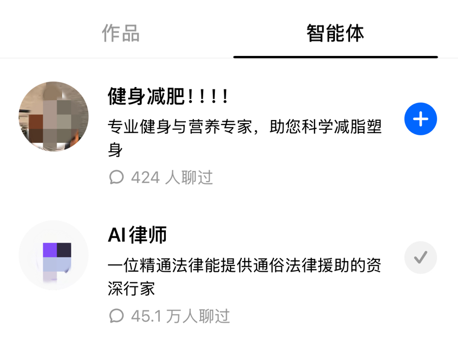 此外,有的用户有不止一个智能体。比如,某个自称精通法律知识的“AI律师”,另一个身份是“健身与营养专家”,至于“Ta”的律师素养和健身知识是否靠谱,都没有参考依据。