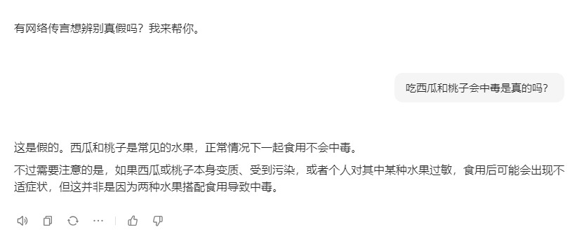 这个新生成的智能体立刻就能公开使用。比如,向它询问网络传言,它会迅速给出答复。可是,答案既不是记者的答复,也并非来自记者提供的数据库,而是使用大模型原有的数据库。总之,记者不能干预它的答复结果。为了避免它误导他人,记者将智能体设置为不公开使用。