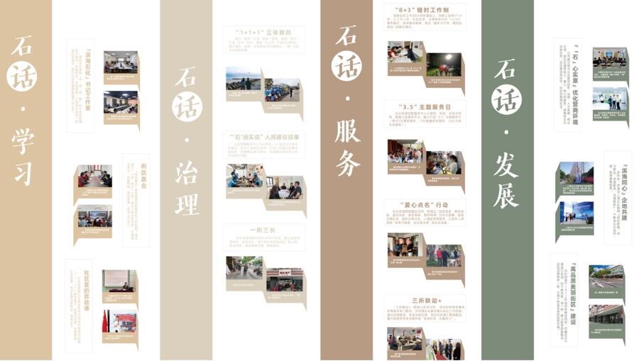 近年来,石化街道以“石”为媒,打造出“石”话学习、治理、服务、发展四大品牌矩阵,形成基层治理的“金字招牌”。从“街区晨会”共商治理难题,到“爱心点名”守护独居老人;从“8+3错时工作制”让居民办事“不打烊”,到“一街三长”织密精细化管理网络……每一个子品牌都源自基层实践,凝结着街道与居民、企业“双向奔赴”的温度。
