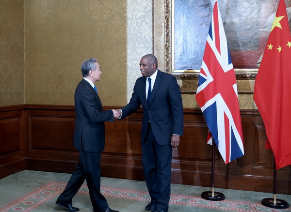 王毅表示,去年11月,习近平主席和斯塔默首相成功会晤,为中英关系改善发展明确了方向,注入了动力。两国各领域交往和机制性对话相继重启,合作成果逐步显现,提振了社会各界信心,也向世界传递了积极信号。事实证明,中英加强对话合作是正确的选择,符合双方利益,顺应世界大势。中英制度、历史、文化不同,存在一些差异和分歧很正常,关键是树立客观理性认知,本着相互尊重态度,加强对话沟通。中方视英方为重要战略伙伴,愿落实两国领导人重要共识,巩固双边关系企稳向好态势,规划好下阶段高层交往,深化各领域务实合作,推动双边关系在新的一年展现新气象。