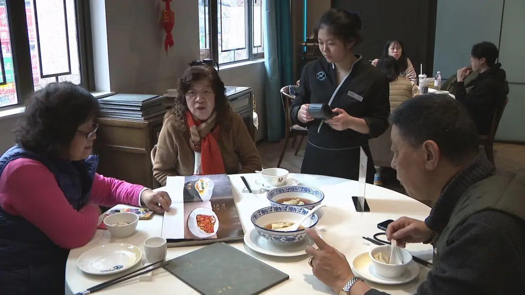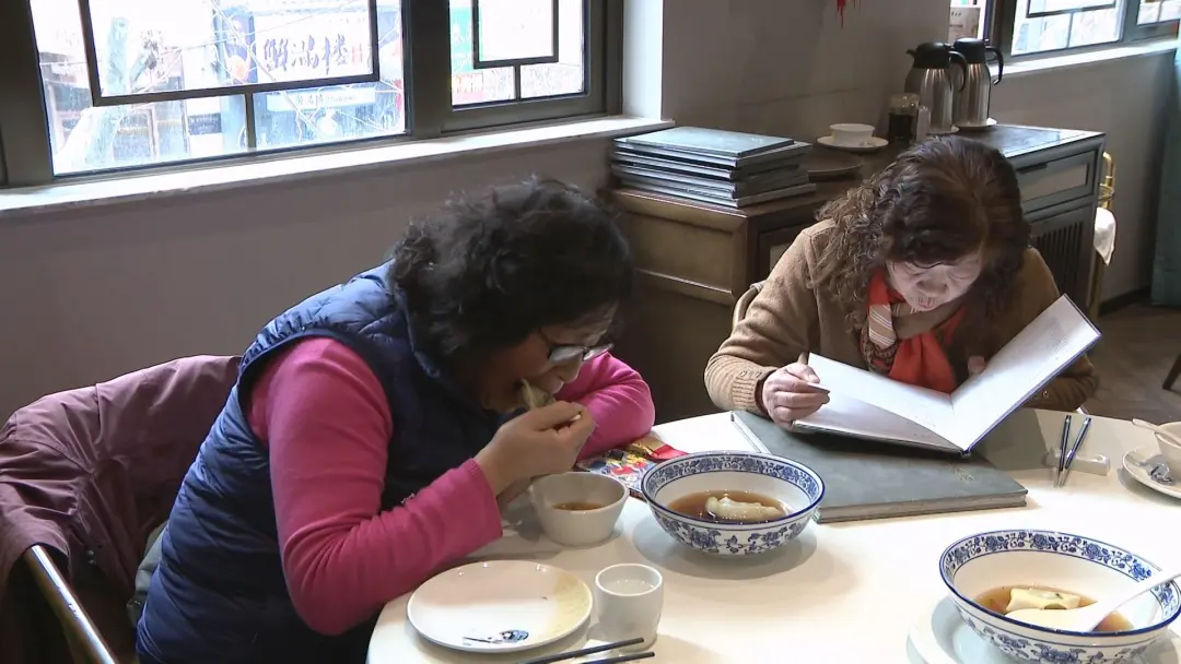 今年新品梅干菜大馄饨也受到不少市民游客的喜爱。这家从宁波来上海旅游的游客一家看到这里有家乡的梅干菜馄饨,连忙点上一碗,吃上一口后直呼味道正宗。85岁的陈阿婆告诉记者:“这是用的宁波、绍兴一带的梅干菜,味道很好、很正宗。馄饨皮非常有韧道,肉质非常鲜美,非常喜欢吃。”