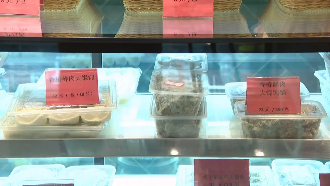 在外卖窗口,也有不少市民前来选购。“这个香椿馄饨去年买过,外婆说很好吃,今年没有想到这么早上市了。我买了3盒,现在就送到外婆家去。”