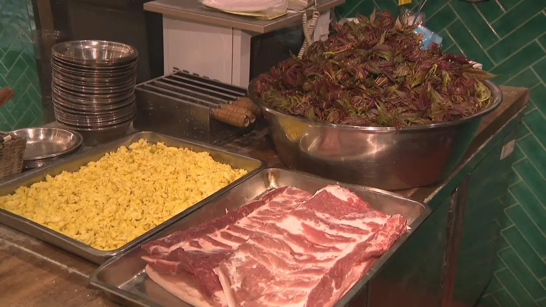 香椿头被称为“树上的蔬菜”,据传早在汉代,香椿头就作为贡品奉献给皇亲国戚享用。香椿头虽然味苦性平,但含有丰富的蛋白质、维生素C、维生素B、胡萝卜素、磷以及人体必需的铁等微量元素。作为非物质文化遗产上海本邦菜肴传统烹饪技艺单位,有着163年历史的老正兴采用传统技艺,经过多次研制,最终推出了香椿鲜肉大馄饨。老正兴餐饮总监陆海媖告诉记者:“香椿馄饨的味道去年就调试得很好了。这其中香椿不能放太多,也不能放太少。太多了就太冲,香椿头的香味没有了。里面还放点鸡蛋,这样吃的时候就有一种爆汁的感觉,而且汤汁也会很多。香椿馄饨吃到嘴里有一股清香的味道,能在嘴里保留很长时间。”