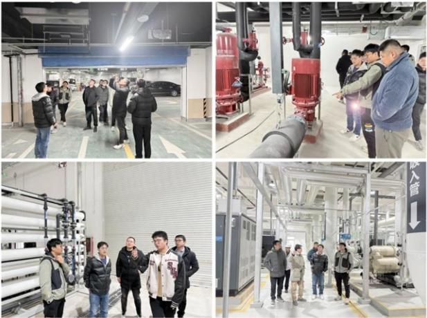 此次观摩以车库机房、水电井为重点,对给排水、电气、暖通等系统做法进行深入讨论,虚拟项目分享了在施工过程中遇到的管线排布难题及其解决策略,对于户内排水管道施工过程中的重难点、实测实量的定位进行了交流分享。