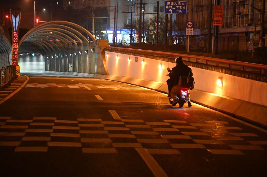 现场|深夜的上海,骑手驶入全市首条可通行电动自行车的越江隧道