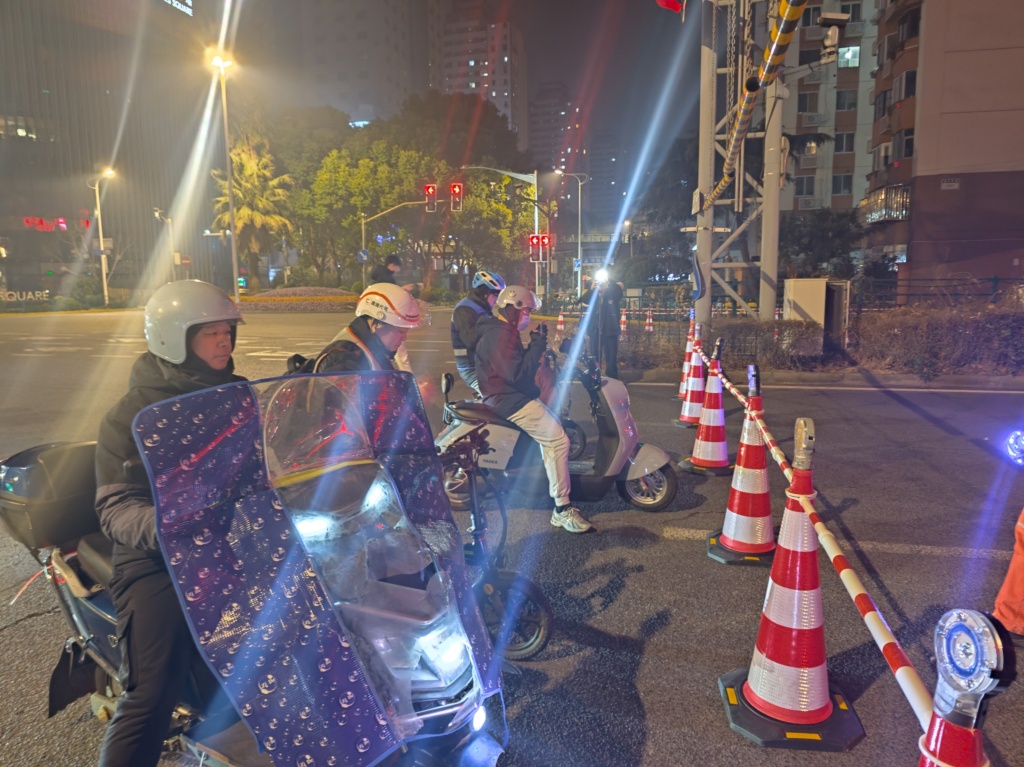 当天22时45分左右,已有一些市民分别在复兴东路隧道浦西和浦东两侧的入口附近等待,其中有不少是骑手、代驾。23时整,大家按照引导,有序进入隧道。