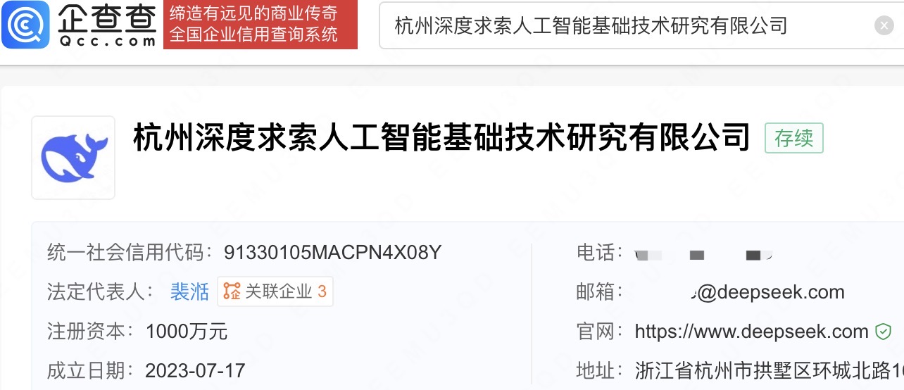 企查查APP显示,近日,DeepSeek关联公司杭州深度求索人工智能基础技术研究有限公司发生工商变更,裴湉由执行董事兼总经理改任经理、董事,新增王贤祖为财务负责人,同时经营范围新增互联网信息服务。