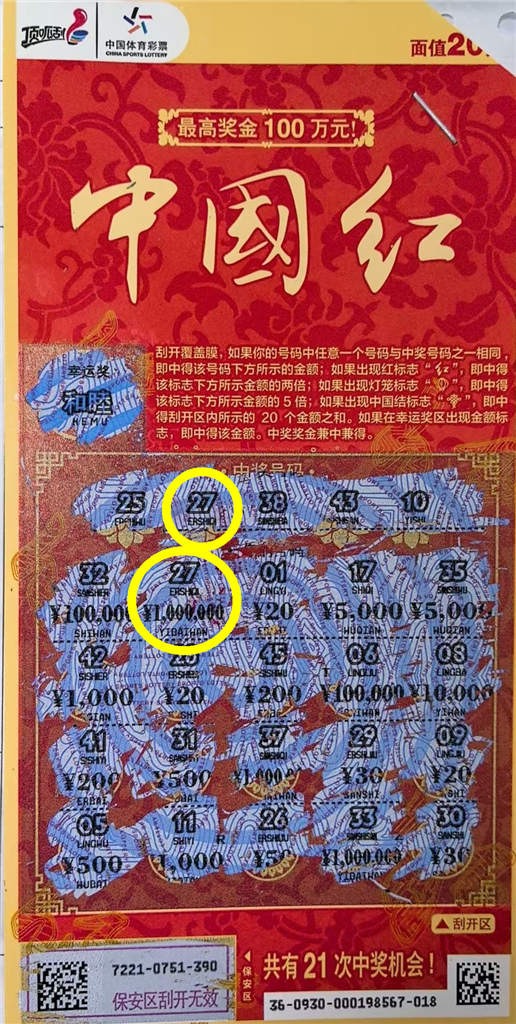 兑奖记 | 喜提100万!闵行购彩者开年中得顶呱刮“中国红”头奖