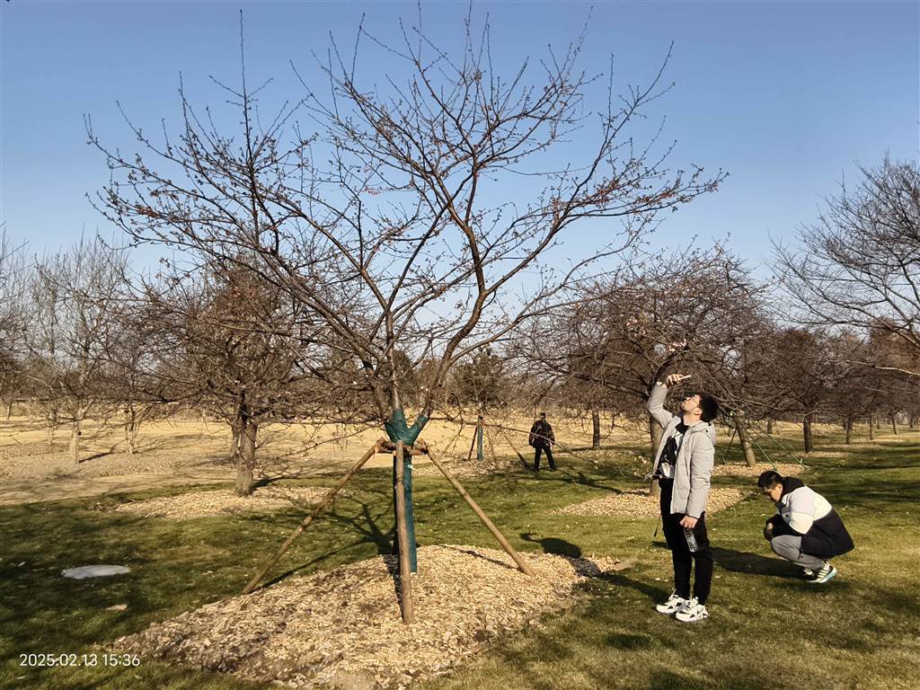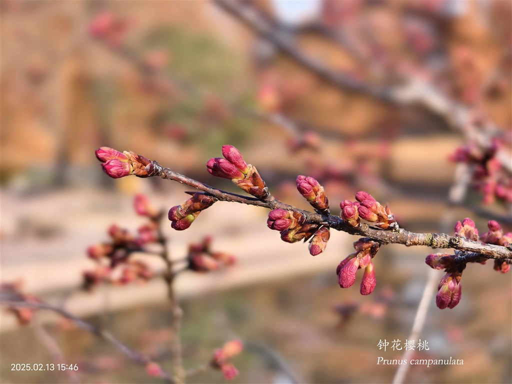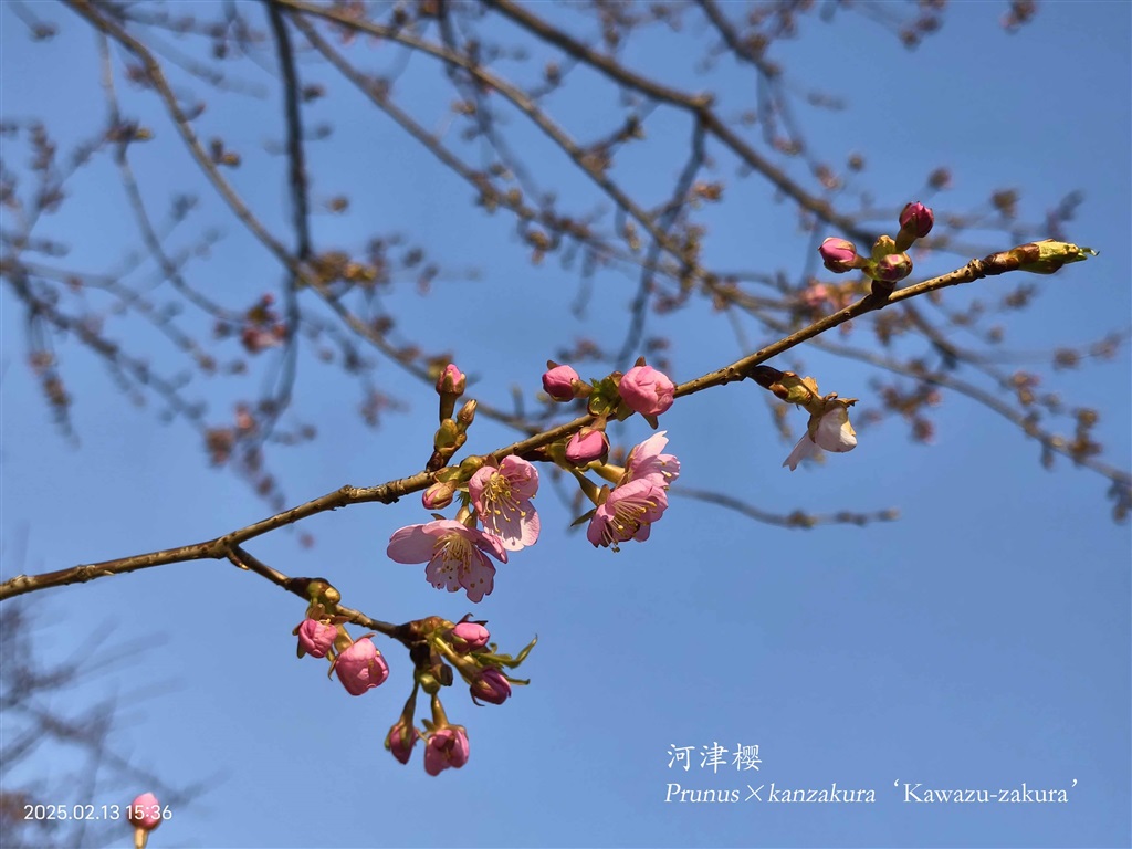 根据目前的观测,寒樱处于初开阶段,花量不到10%,这是寒樱自2018年冬季引种至今初花期最晚的一年,这和今年冬季1月份天气连续干燥,以及2月份持续低温有关。根据气温统计,2025年2月份上半个月平均气温只有4.38℃,是7年来同期平均气温最低的年份,所以寒樱放慢了开放的脚步,预计在2月下旬进入最佳观赏期。