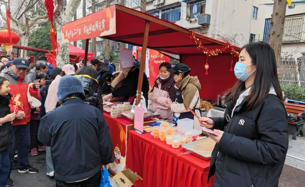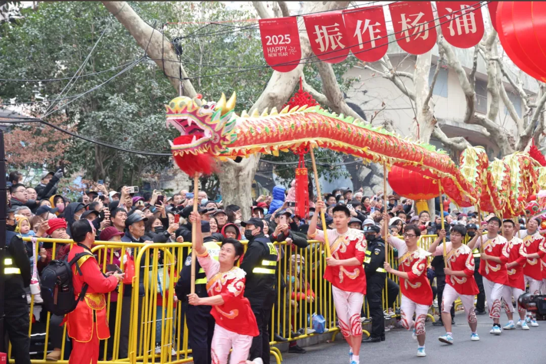 “元宵行街会”是杨浦区四平路街道每年的传统节目。就在今年,2025年杨浦区环同济第二十届“元宵行街会”火爆“开街”。当天,抚顺路开设了“非遗集市”,设置“吃、喝、玩、乐”四个板块的文化互动项目。其中,北侧“吃喝”一条街集聚了杨浦知名美食,南侧“玩乐”非遗互动展示一条街则集中展示了杨浦本地的非遗项目。利用此次宝贵机会,四平路街道着力提升营商环境,更好地宣传辖区企业。