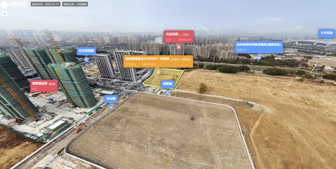 1月21日,杭州市2025年第二批宅地开拍。位于余杭区西站单元的西站新城单元YH080701-40地块经过32轮竞价成交,溢价率25.5%,成交楼板价26101元/平方米,成为地块所在云城板块的单价地王。
