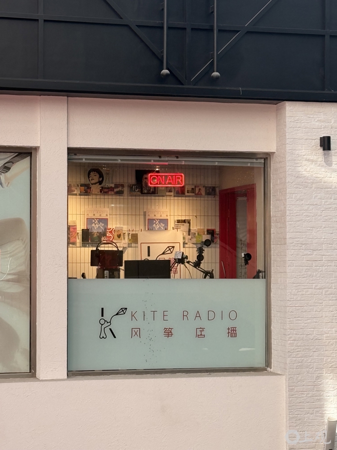 站在玫瑰坊中庭,“咖啡店播”录音室的落地玻璃窗后,“ON AIR”的红灯闪烁,就像一个开放的播客舞台,录播客的人也成为一道城市风景。