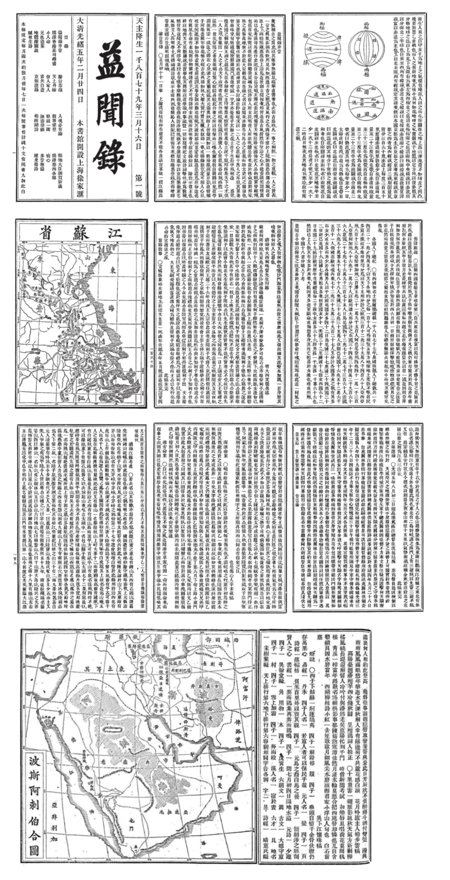 《益闻录》创办时正值晚清“洋务运动”兴起,在“西学东渐”的热潮中,宣传西方科学知识和技术发明,成为该刊的又一重要特色。该刊介绍的自然科学知识涉及物理学、天文学、工程学等领域,《论显微镜》《论汽机》《论德律风》等文介绍了同时代西方显微镜、蒸汽机、电话等最新的科技发明成果;《玻璃制衣》《屋料奇创》《洗衣新法》等文,介绍了与民生所需相关的制造技术,《机器垦荒》是中国第一次记载农业机械耕作的文章;《月食纪闻》《德国测星》《日蚀示期》《彗星又出》等文,则是对天文现象的观测和知识介绍。该刊着重介绍了大量地理知识,除了刊载《地体浑圆说》《地球形势说》等普及性文章,还刊发了清代中国各行政区划的地图和世界五大洲主要国家和地区的地图。这些自然科学的科普文章和测绘图,大大开拓了当时国人的眼界。