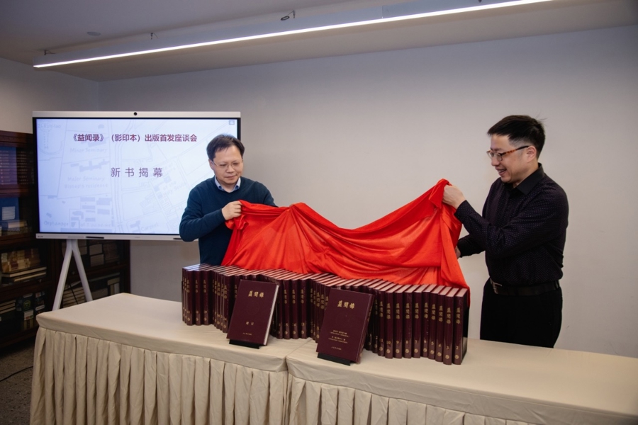 上海图书馆历史文献中心主任陈喆和上海人民出版社副总编辑、上海书店出版社社长孙瑜共同为新书揭幕。