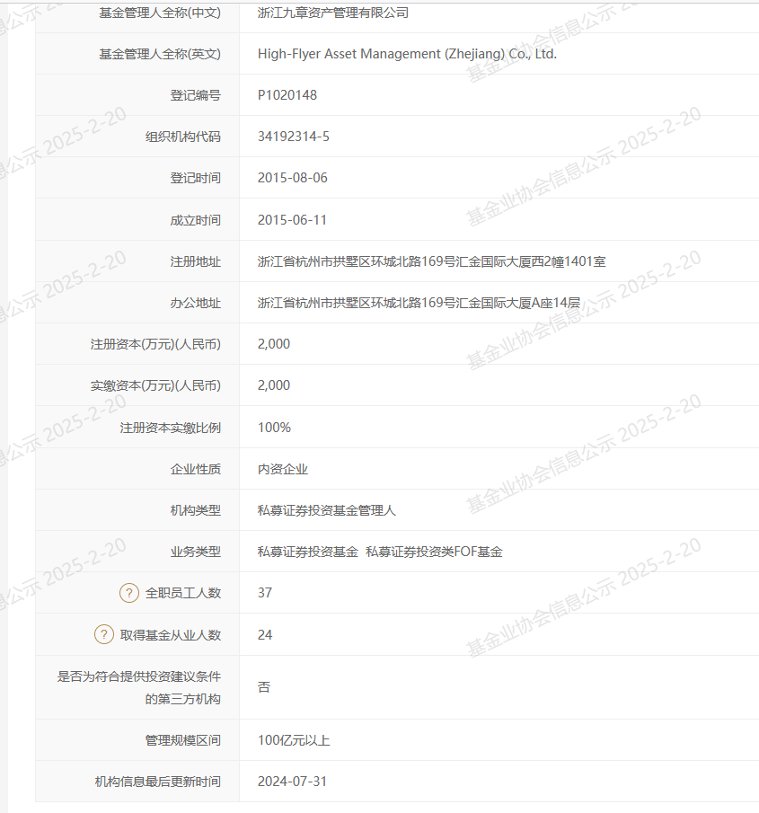 中基协数据显示,截至2024年7月31日,浙江九章资产管理规模在100亿元以上;截至2024年4月26日,宁波幻方量化的管理规模也达到100亿元以上。
