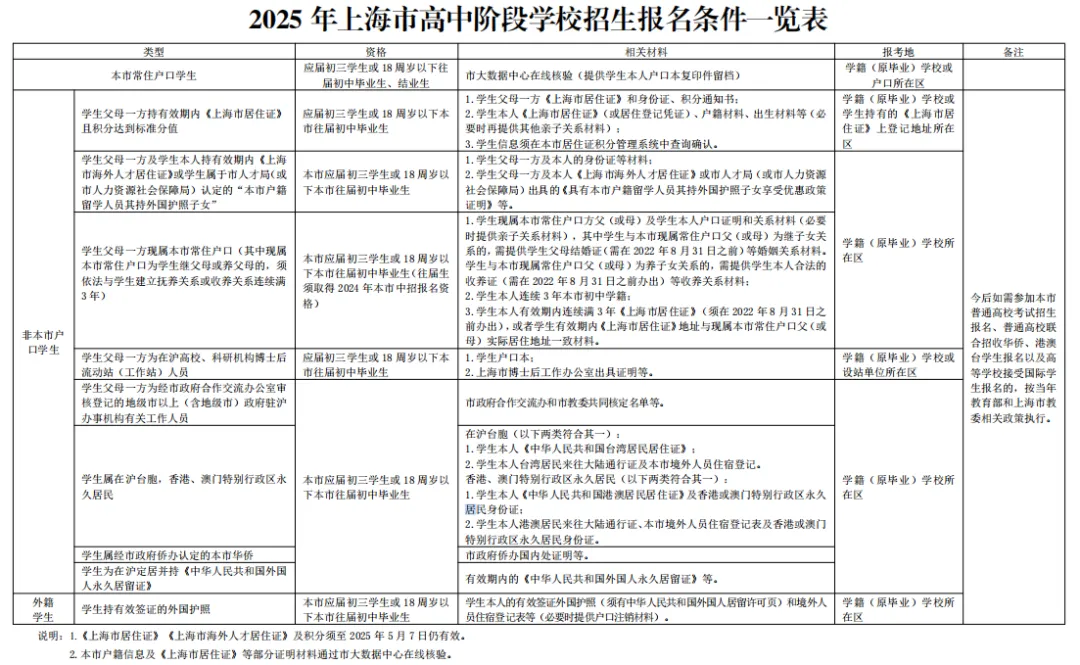 4.符合本市中招报名条件的补报名学生,如在统一报名时未能取得有效的证明材料,最迟应于2025年5月7日前持有效证明材料向区招考机构提出申请,补报名时间为2025年5月6日-7日。参加补报名的学生从完成报名确认起,享受后续时间段内的本市中招相关政策。