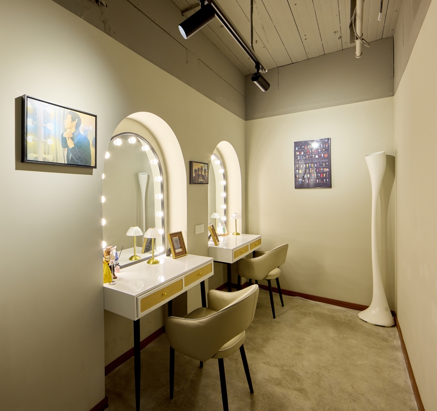 “1排1座”剧院座椅、后台同款化妆镜、墙上的剧照和台词……孙礼杰在店内设计多处戏剧主题打卡点,还将自己积攒的演出工作证挂在楼梯一角,做成创意装置。就连常来店里“串门”的小白猫,孙礼杰也叫它“白玉兰”。他笑道,“我家有两只狗,一只叫‘百老汇’,一只叫‘格莱美’,现在这只小猫来了,应该有一个我们上海艺术奖项的名字。”