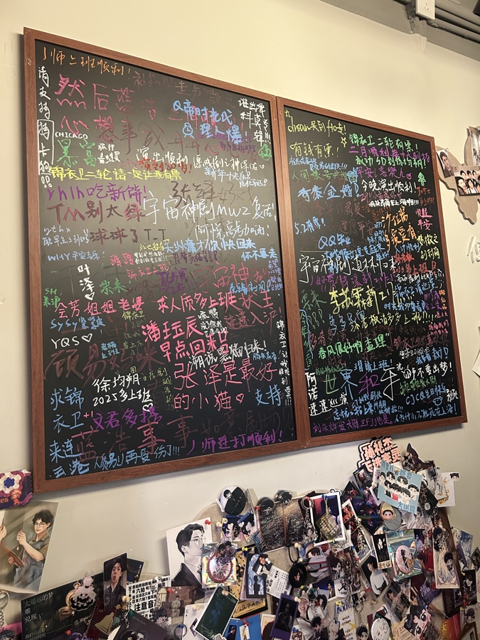 Stage Door的顾客,大多是背着帆布袋、拿着相机和演出周边,穿梭在上海大大小小剧场间的女孩,她们自称“剧女”。“这是一群超级可爱的人。从作为演员在SD时和观众交流,到现在作为老板和顾客聊天,我越来越能共情她们了。”孙礼杰说,“在店里,大家逐渐无话不谈,有时探讨对戏和角色的理解,有时分享生活的困惑,也有人向我倾诉考研、工作时遇到的问题,把这里当作树洞。”