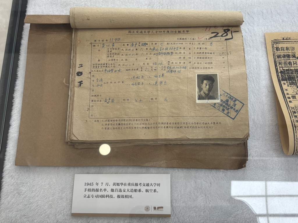 1945年7月,黄旭华报考交通大学时的报名单。澎湃新闻记者 邹佳雯 图