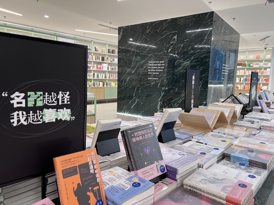 一系列脑洞大开的图书主题展陈令人耳目一新——“好书求签筒,越读越幸运”“能读到它,有点子幸运在身上”“两脚兽们的困惑”“名字越怪,我越喜欢”“我们一起喵喵喵”等。“能读到它,有点子幸运在身上”打捞文学星河中被低估的作品,“两脚兽们的困惑”书单聚焦“为什么”系列,《为什么伟大不能被计划》《我们为什么控制不了自己》《为什么我们爱喝酒》等图书以幽默独特的视角回应现代生活焦虑,而“我们一起喵喵喵”则让“猫奴”们挪不开脚步。