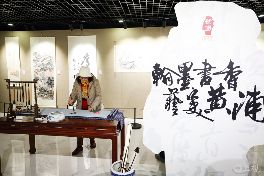 黄浦文化中心当天9点一开馆,不少住在周边的市民就前来参观打卡。开馆首日的各项活动预约瞬间秒空:评弹演出座无虚席,集章打卡活动互动热烈,“少山咖啡教室”拉花咖啡创意吸睛,“上海的声音”沪剧导赏引人入胜,群文团队活动及沙龙开展热烈,海派书画展前观众流连忘返……