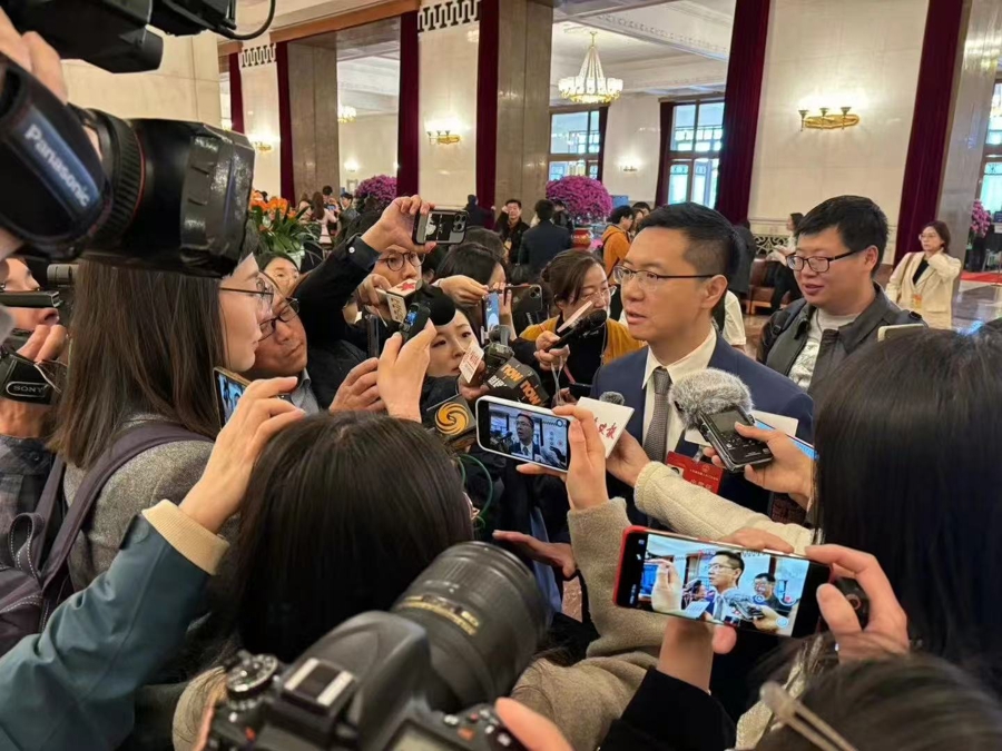 田轩代表接受记者采访。