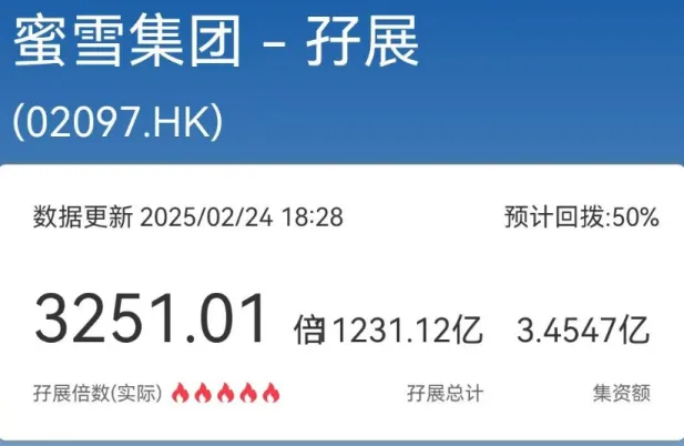 捷利交易宝数据显示,截至2月24日18:28,蜜雪集团的孖展申购倍数已达3251倍,孖展申购额达1.12万亿港元。