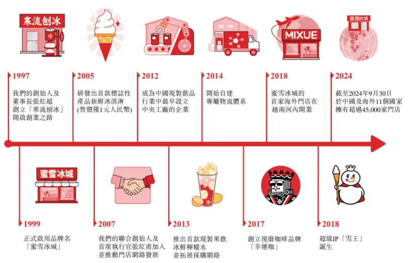 蜜雪集团旗下有现制茶饮品牌“蜜雪冰城”和现磨咖啡品牌“幸运咖”。截至2024年9月30日,蜜雪通过加盟模式发展的门店网络拥有超过4.5万家门店,覆盖中国及海外11个国家。