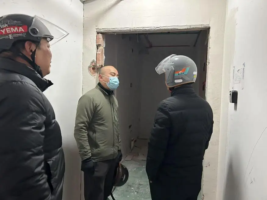 为进一步明确违规装修的具体点位,街道城运中心立即发动多部门开展联勤联动处置,迅速召集消防民警、社区安全顾问、街道综合行政执法队等部门再次上门排摸情况。经现场核实确认,物业公共部位的消防警报器和消防应急灯已被遮挡,新砌墙体的承重能力未达标准,因此,该区域一旦发生紧急情况,不仅消防设备难以启动,墙面还存在坍塌的风险。