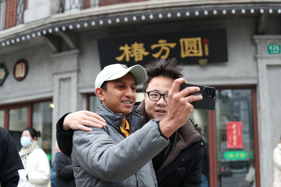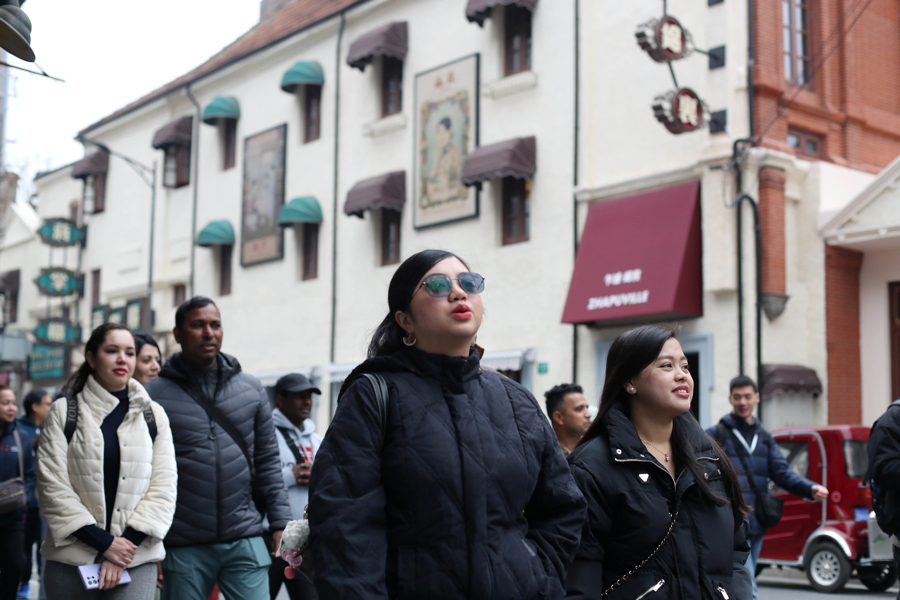 最后,不少外国游客抵达了沪上海派潮流地标“滨港商业中心今潮8弄”,漫步百年海派弄堂,品尝老上海风味餐饮,体验老上海的万种风情。他们忙着拍照片、拍视频,希望让更多人了解中国,了解地道的上海文化。