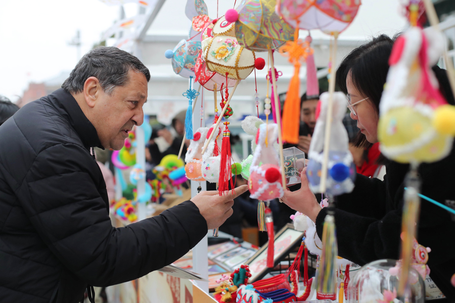 在非遗文化展示区,灯彩、剪纸、翻花、推拿等摊位一字排开。苏珊对现场的“纸艺翻花”非常感兴趣。得知苏珊属龙,“纸艺翻花”非遗项目传承人刘凤臣,直接将一只“翻花龙”送给了她,这令苏珊非常兴奋,不住地说着感谢。刘凤臣告诉记者,自己已经是第3次在国际客运中心码头展示了,很多外国客人都对中国传统文化很有兴趣,有一位美国游客一次就买了很多各式的“纸艺翻花”,表示要拿回美国做纪念、送朋友。