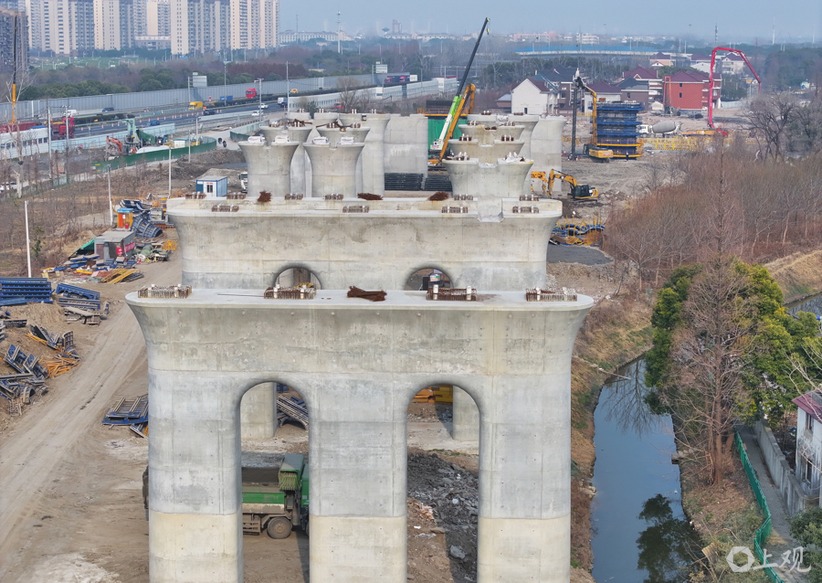 由中铁十五局承建的沪渝蓉高铁站前Ⅰ标三分部位于宝山区罗店镇,承担的主要任务为上海特大桥及其动走线工程,主要包括2条并行正线,5条并行动走线工程,线路总长19.15km,全部为高架桥。