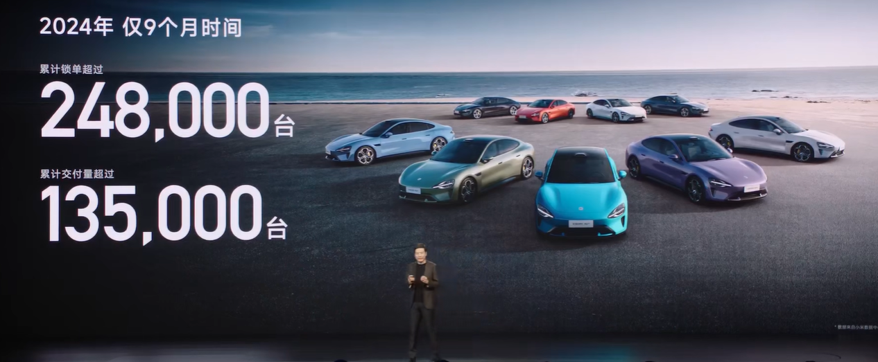 雷军表示,截至去年底,上市仅9个月,小米汽车累计锁单超24.8万辆,累计交付超13.5万辆。