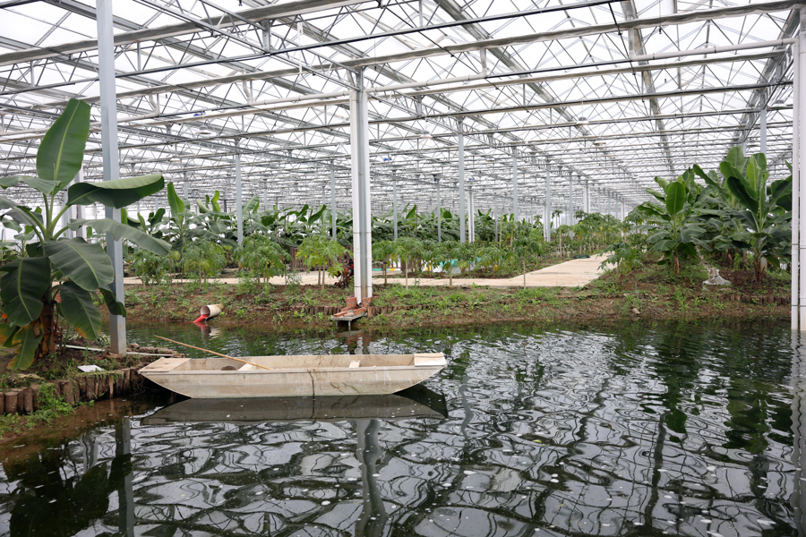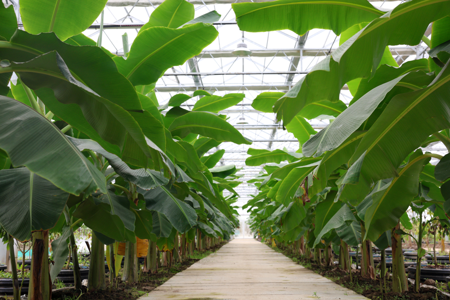 智慧农场智能大棚,模拟出芭蕉、荔枝、芒果等15种热带水果的生长环境,成功实现“南果北移”。