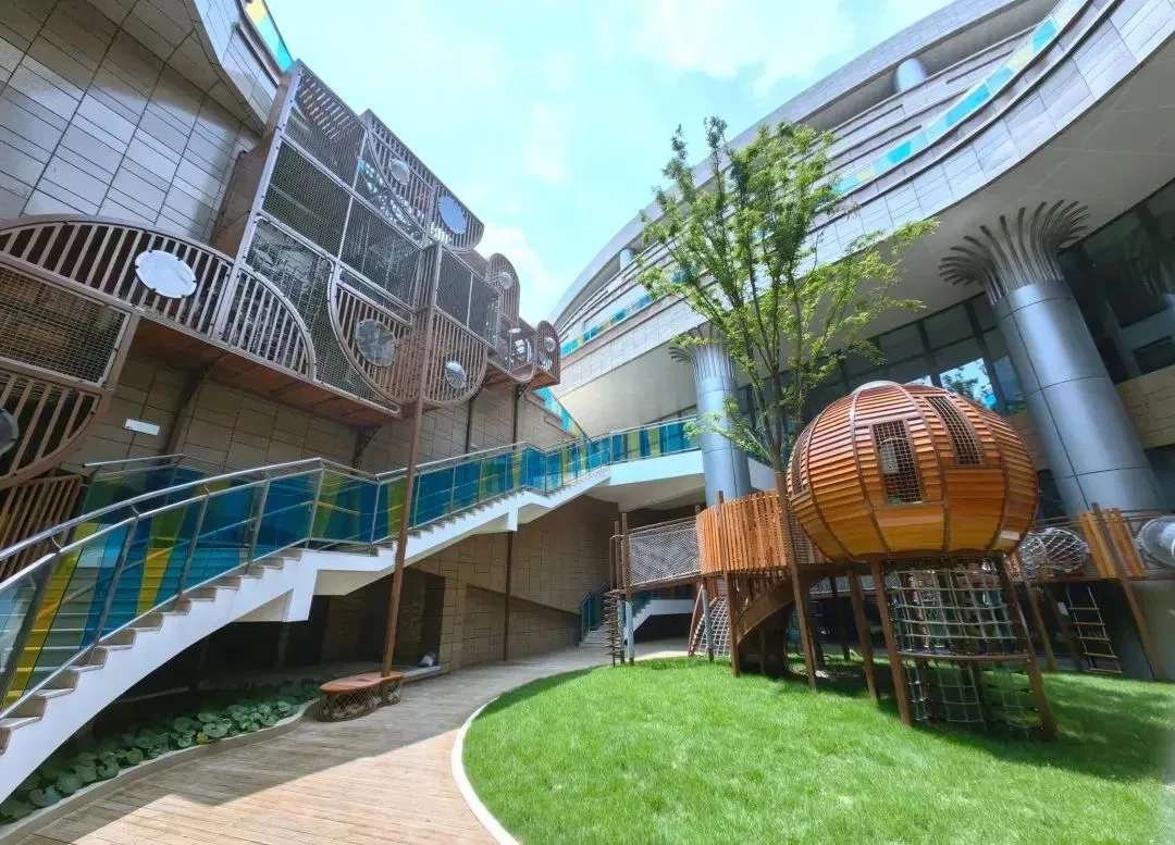 园区设置了多个互动区域,如户外综合探索区、模拟厨房体验区、建构区、图书馆、艺术室等,在空间布局、材料使用等方面融入各类教育理念,通过布置生动有趣的玩教具及营造沉浸式互动情境,引导孩子们在玩中学,体现以“幼儿发展为本”的教育宗旨。