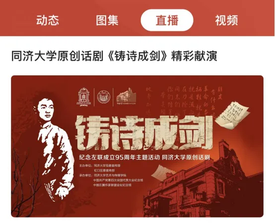 纪念左联成立95周年:同济大学原创话剧《铸诗成剑》精彩献演