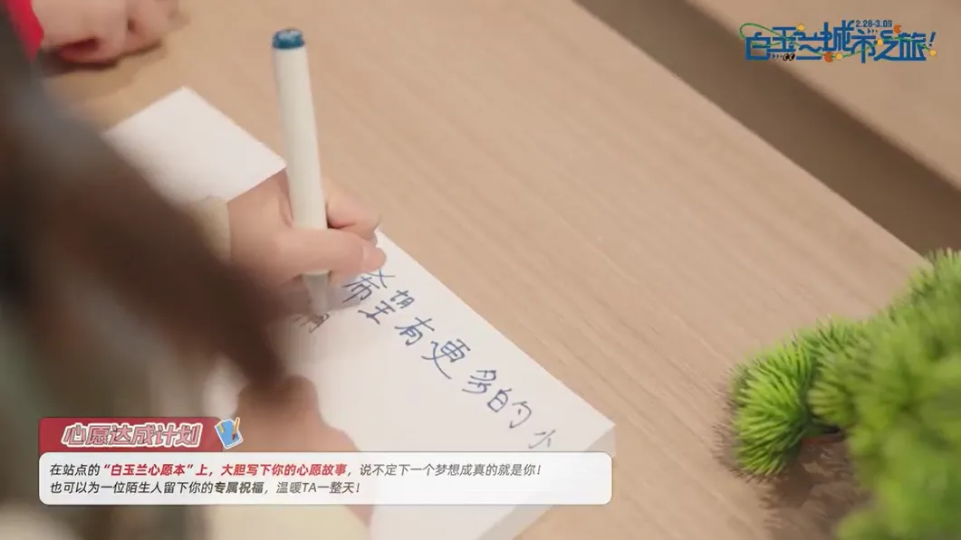 在站点的「白玉兰心愿本」上,写下你的春日愿望,或为陌生人留下暖心祝福——或许下一个被幸运砸中的就是你!