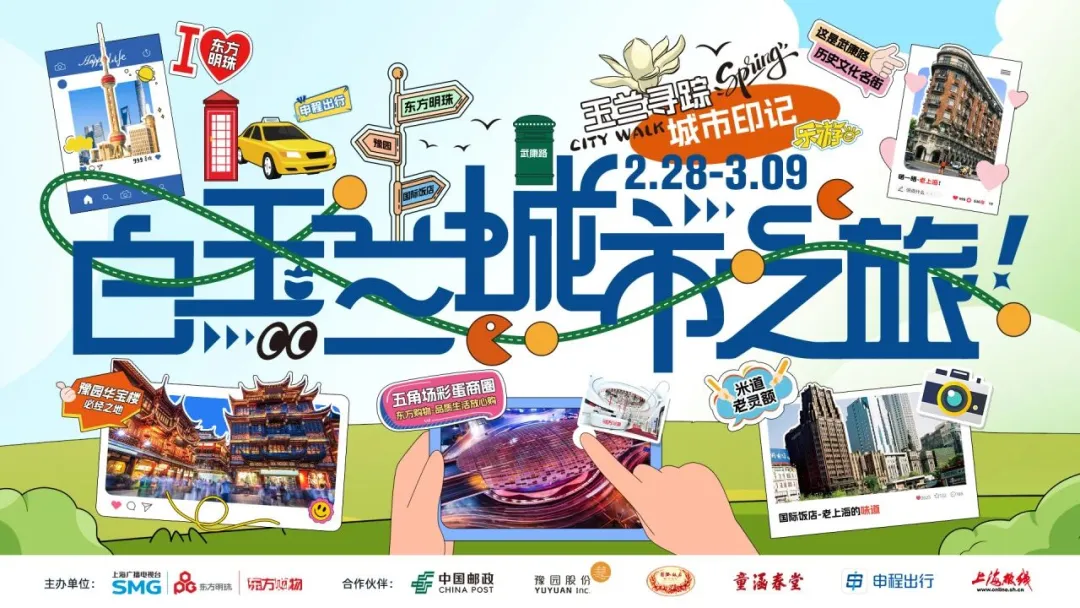 2月28日至3月9日,融合城市探索与潮流打卡,展现申城商旅文体展特色魅力的互动活动——“白玉兰城市之旅”火热来袭,邀您共赴申城春日之约!五角场商圈等上海五大经典地标梦幻联动,N重惊喜福利,带你解锁魔都的文艺腔调与烟火气息,这是一次深度体验上海城市文化的绝佳机会,打卡全部站点即可赢取限量版白玉兰城市之旅纪念章!