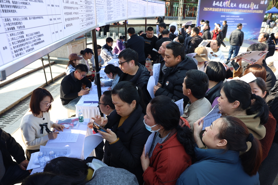 2025年3月1日,金山高新区举办大型招聘会,提供408个岗位工种,招聘1700余人,现场吸引了2000多名求职者简历1012份,意向录用496人,达成就业意向129人。