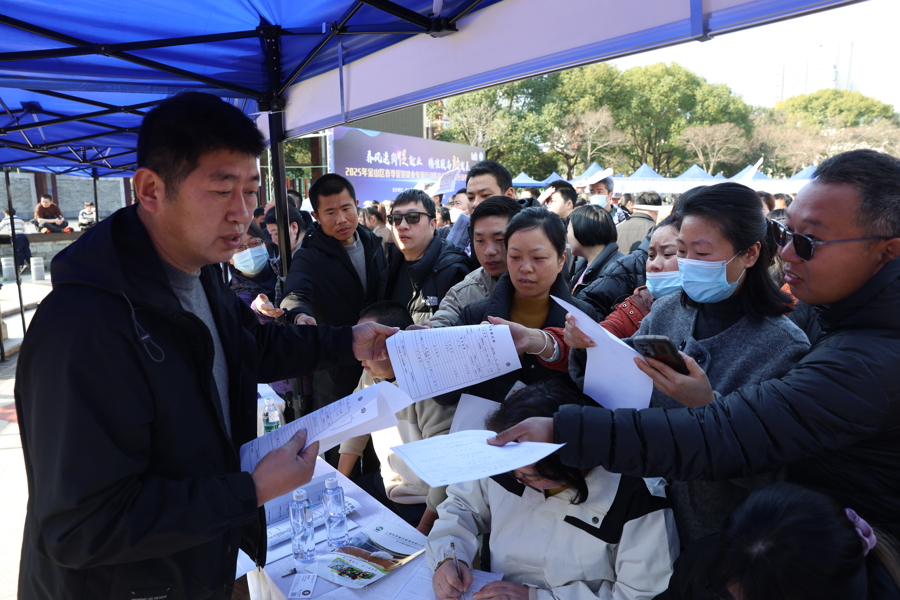 这是金山区今年促就业十场“春风行动”招聘会中的第七场,也是规模最大的一场。