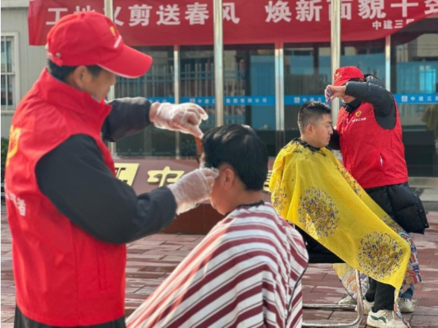 “二月二龙抬头、风调雨顺好兆头”,农历二月二这天民间都有理发习俗。2月28日,中建三局西安医学院第一附属医院沣东院区(一期)项目和二府庄城市更新项目工地热闹非凡,原来是在即将到来的二月二前夕,为了让广大工友体验民间习俗,满足他们在“龙抬头”这天的理发愿望,也搏个好彩“头”,项目部便把“理发店”搬到工地,让工友们足不出户便能享受免费理发服务。