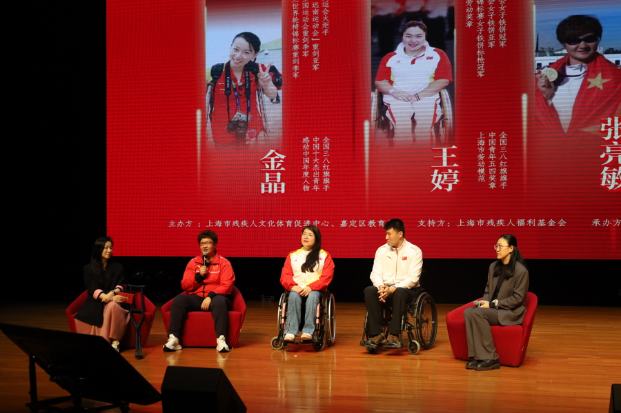 王婷(中)参加上海残奥冠军宣讲。受访者供图(下同)