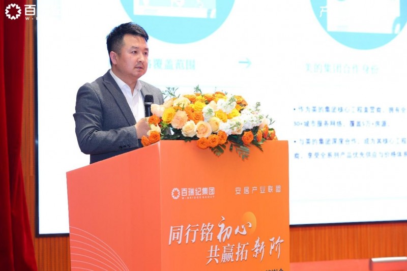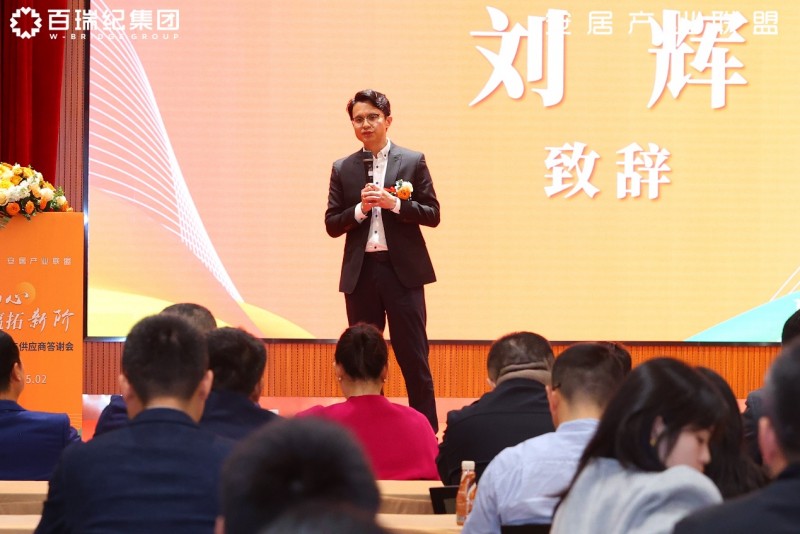 在活动开幕式上,百瑞纪集团创始人兼CEO刘辉发表了“十年同行,共生共赢”的致辞。他回顾了集团十年的发展历程,并对供应商伙伴的长期支持表示诚挚感谢:“过去十年,正是各位的不离不弃,让我们成功打造了物美价廉的租赁产品,服务了100多个加盟商和数万间房源。”他特别提到,供应链平台“安居产业联盟”自运营三年以来,累计交易额突破百亿元,并在钢筋、电器、五金洁具等核心品类中建立起行业领先优势。