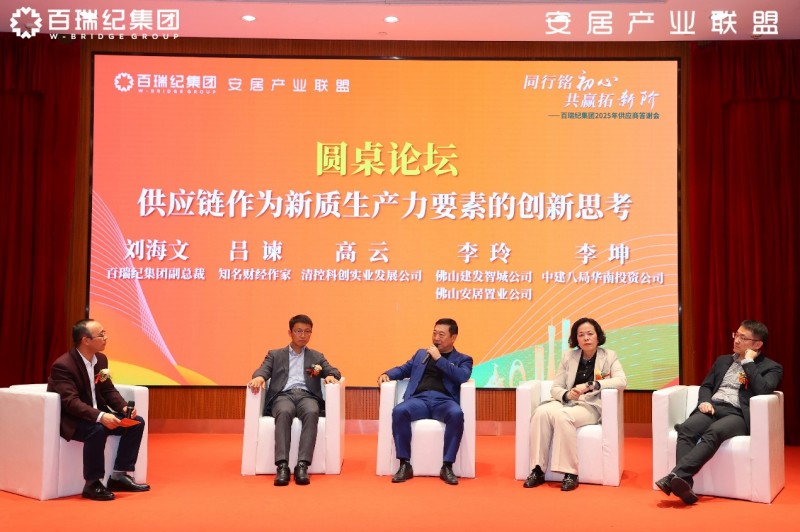 在圆桌论坛环节,与会嘉宾围绕“供应链作为新质生产力要素的创新思考”展开深度探讨。知名财经作家吕谏指出,供应链是核心环节,各方应敞开怀抱合作共赢,控本增效;中建八局华南投资公司李坤强调国央企视角下供应链需平衡“质量、成本、效率、用户体验”四维目标,更关注供应链的服务与合作模式问题;清控科创高云提出供应链新质生产力应具备“定制化、精细化、智能化”的核心要素;佛山建发智城公司&佛山安居置业公司李玲则表示未来希望与百瑞纪集团在供应链方面展开更深入的合作,创新发展。