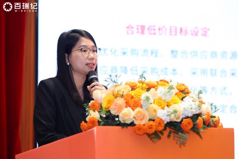 百瑞纪集团采购部负责人何银桂则以98%的到货准时率、100%的成本控制达标率和99%的客户满意度展现了供应链管理的硬实力。她指出,2025年将深化标准品集约采购、供应商资源整合与评估体系优化,推动供应商从交易伙伴向价值共同体转型,以应对市场波动。