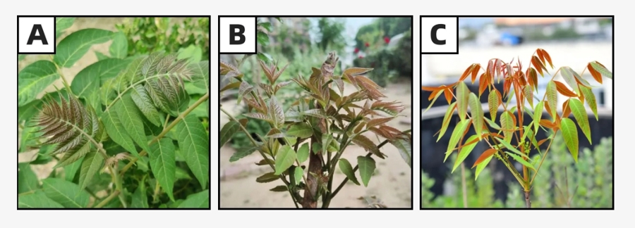 A:臭椿;B:香椿;C:漆树芽(图源:丁香妈妈)