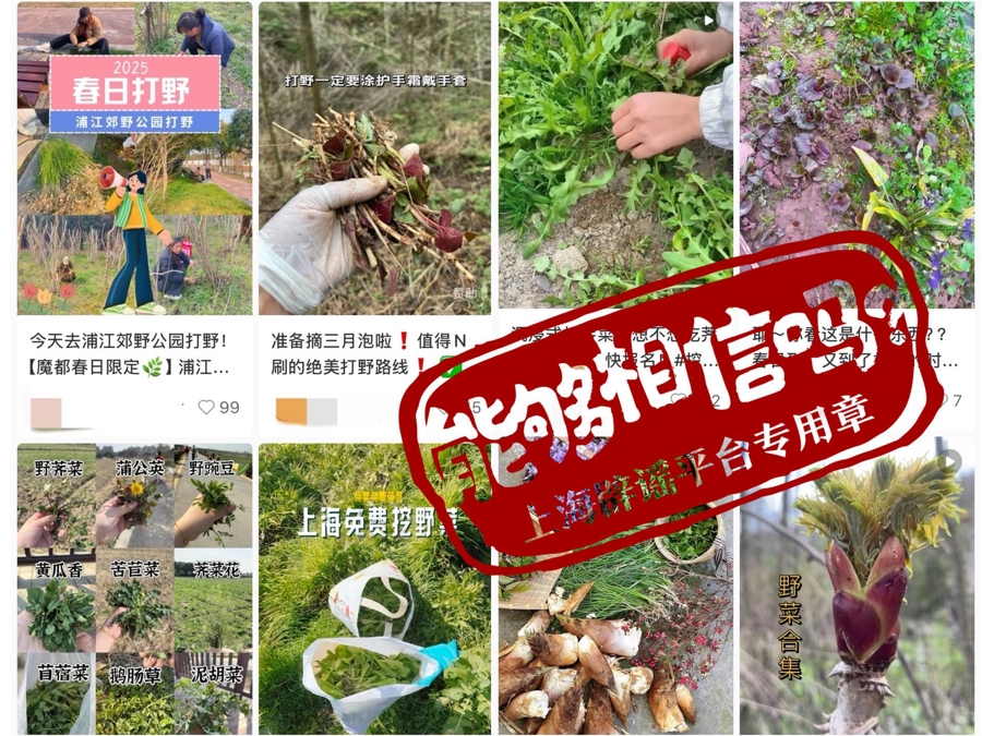 但社交平台也出现一些有误导性的“经验帖”,“指点”网友按图索骥,从身边的绿地、公园等挖春菜,并美曰其名“打野”。殊不知,安全隐患不小。